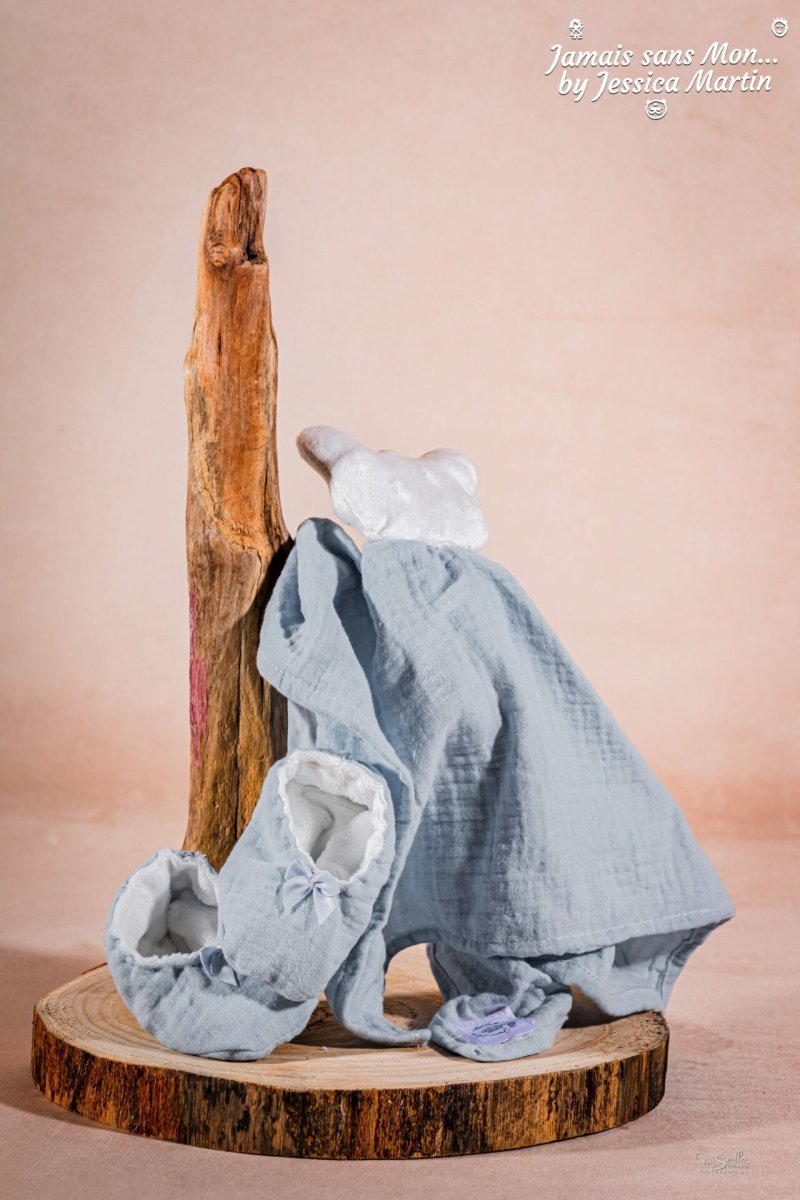 Ensemble coffret naissance “CHAUSSONS” : Doudou avec sa joli tête en polaire et ses chaussons tout doux sont parfaits pour que les petits pieds de bébé soient au chaud. Doudou avec la tête en tissu polaire et carré de gaze de coton. Ce petit coffret de naissance est idéal à offrir à la maternité ou […]