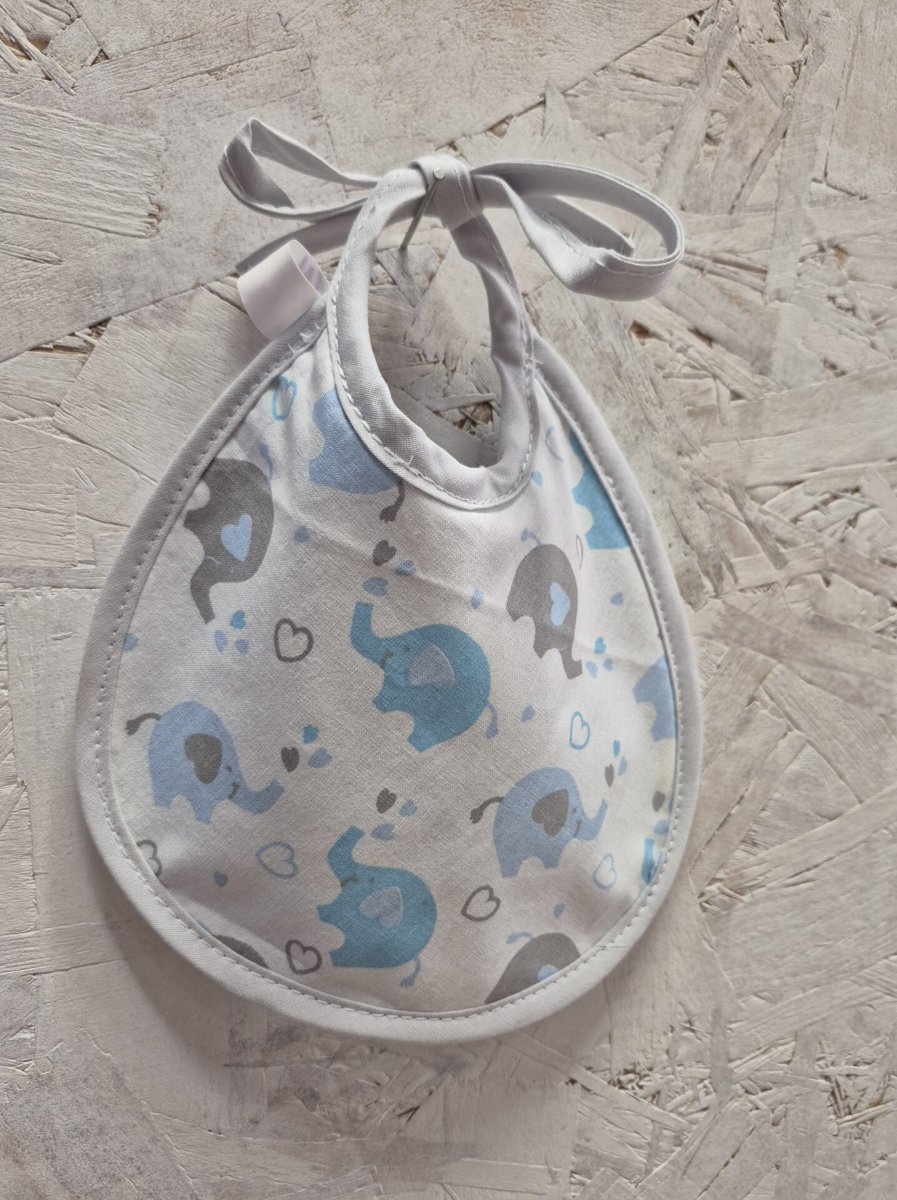 Le bavoir naissance, orné de jolis motifs d’éléphants, complète parfaitement cet ensemble tendre et pratique.