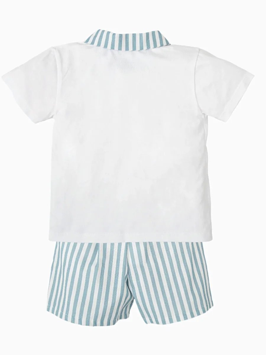 Ensemble polo et short rayé – Bleu méditerannée/blanc