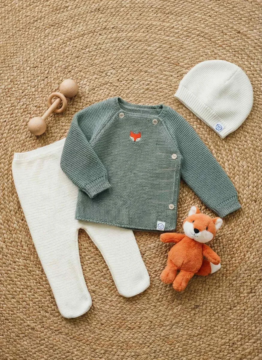 Craquez pour cet adorable ensemble naissance Renard, pensé pour envelopper bébé de douceur dès ses premiers jours.