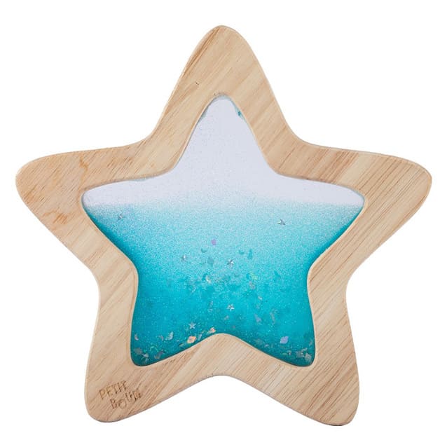 Emerveillez bébé avec l’étoile sensorielle de la marque Petit boum ! Remplie d’un liquide bleu phosphorescent, de beaucoup de paillettes et d’étoiles qui flottent et qui glissent le long des parois, elle attirera sans aucun doute la curiosité des plus petits ! Elle est également relaxante et apaisante, même pour les plus grands !. Fabriquée à la main en Espagne, elle peut être manipulée et mâchouillée en toute sécurité !