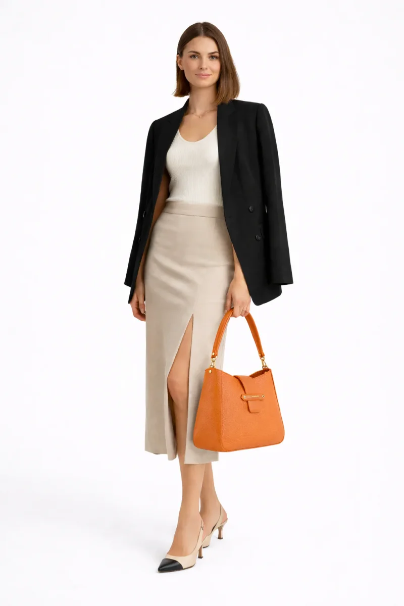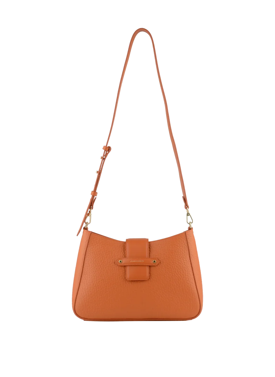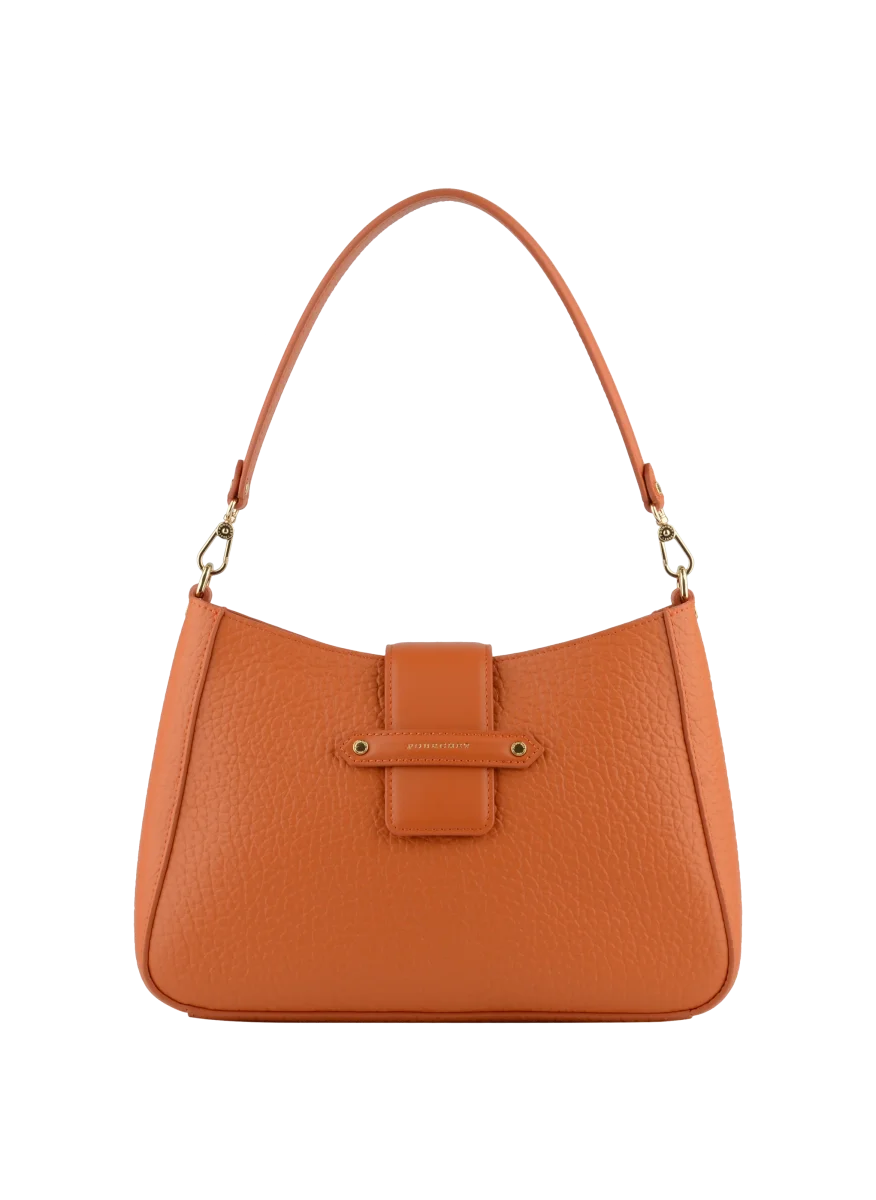 Fleuves Grand modèle (GM), cette ligne au cuir grainé et rigide, il se porte à l’épaule accompagné d’une bandoulière amovible et réglable.