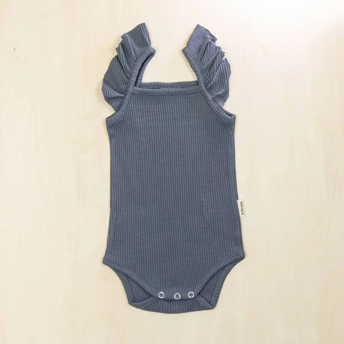 Available in six beautiful earth-inspired colors and a range of sizes, this bodysuit grows with your child from their early months through toddlerhood. The timeless flutter sleeve design works beautifully on its own in warmer weather or layered under cardigans when temperatures drop.