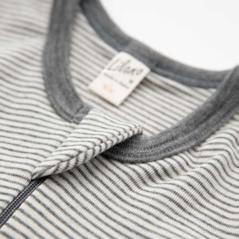 Gigoteuse à pieds en laine mérinos et soie pour enfant : fine, douce et thermorégulatrice. Elle s’ouvre entièrement sur le devant avec une fermeture éclair.