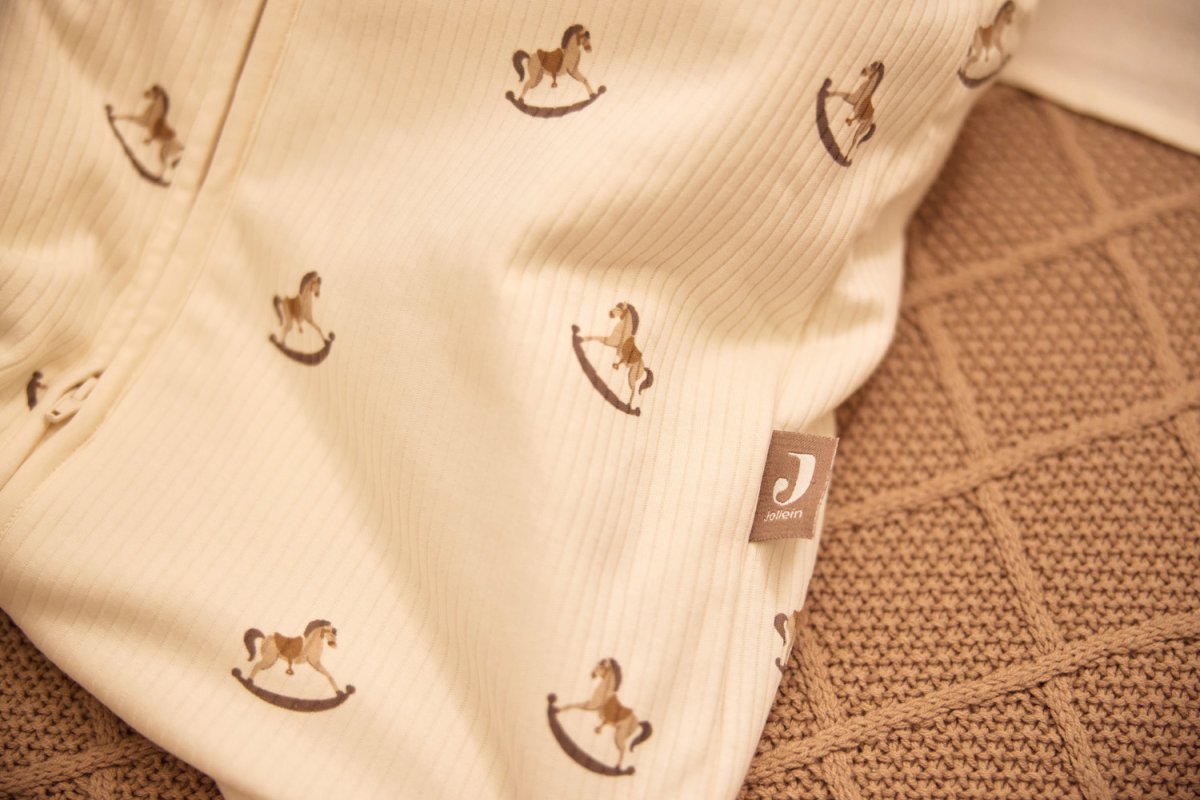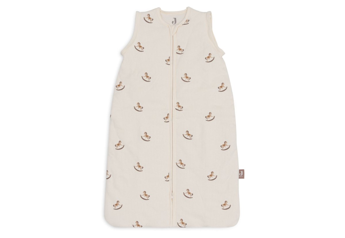 On craque totalement pour le doux imprimé de la gigoteuse « Nostalgic ride » de Jollein ! Un joli motif « petit cheval à bascule » mixte, qui s’accordera parfaitement dans une chambre à l’ambiance vintage. En jersey de coton, elle est dotée de manches amovibles. Passez ainsi facilement d’une valeur TOG de 3,5 pour les froides journées d’hiver à une valeur TOG de 2.5 pour les nuits fraîches du printemps et de l’automne, en retirant les manches ! La fermeture éclair sur tout le tour, permet d’y glisser facilement bébé à l’intérieur ! Guides tailles : 70 cm : âge 3/6 mois 90 cm : âge 6/18 mois