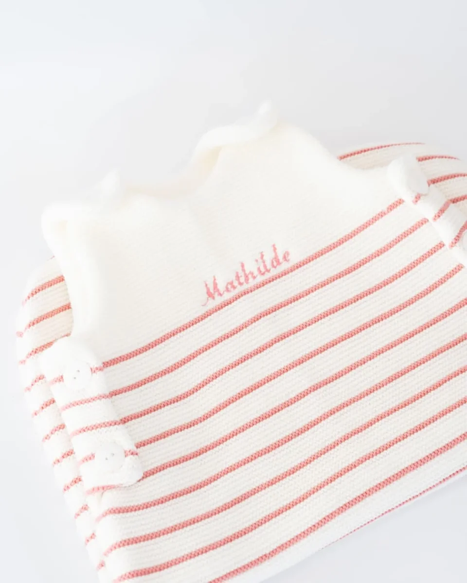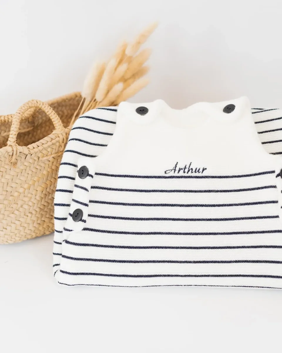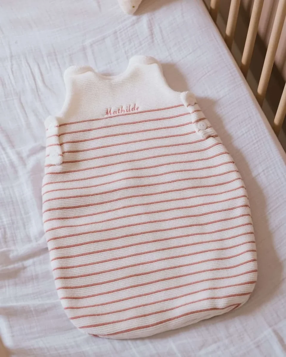 Faîtes broder un prénom ou un petit mot doux sur ce joli gigoteuse tricotée en France. Cette gigoteuse personnalisable avec broderie est le cadeau idéal pour une naissance.