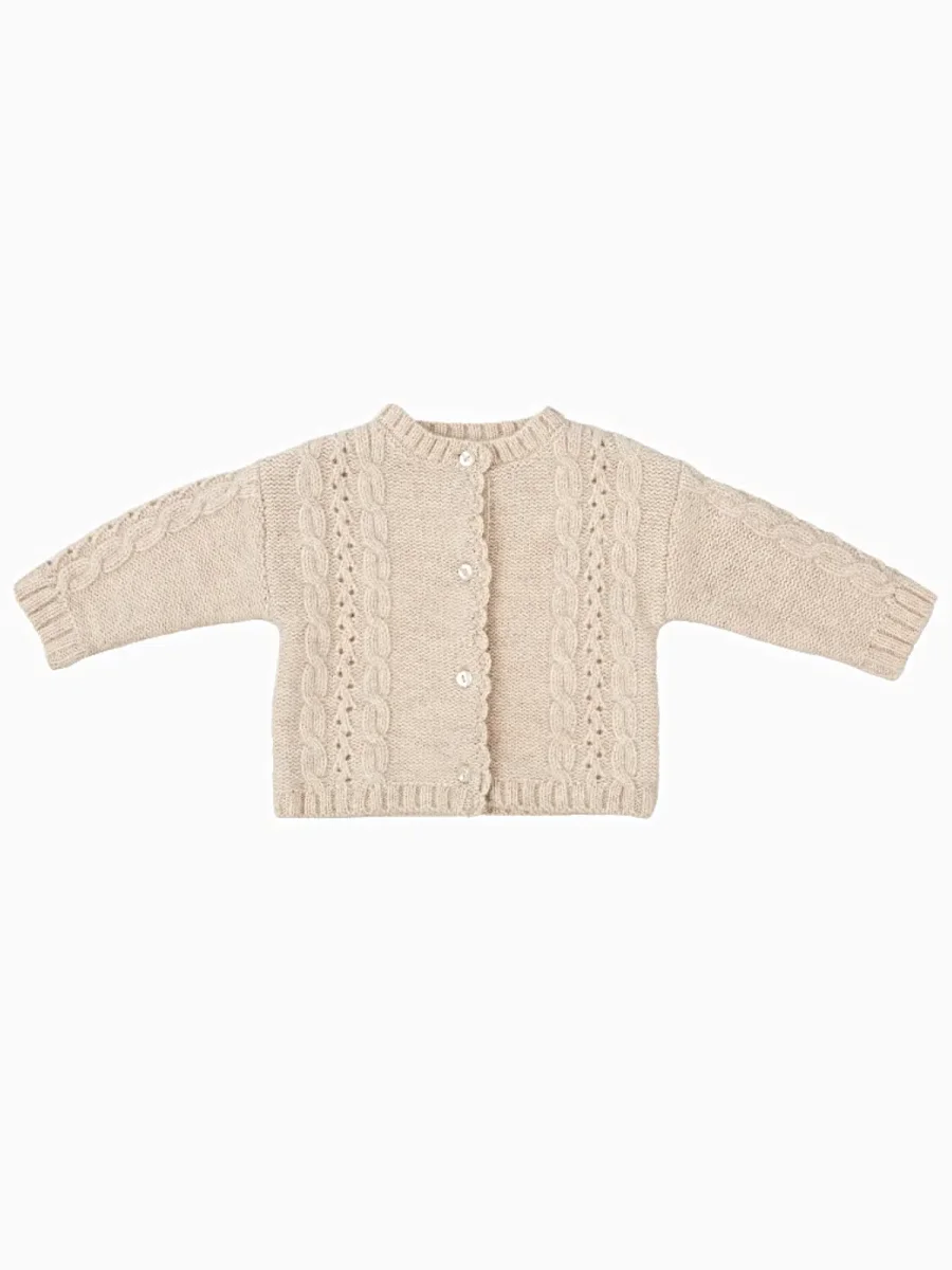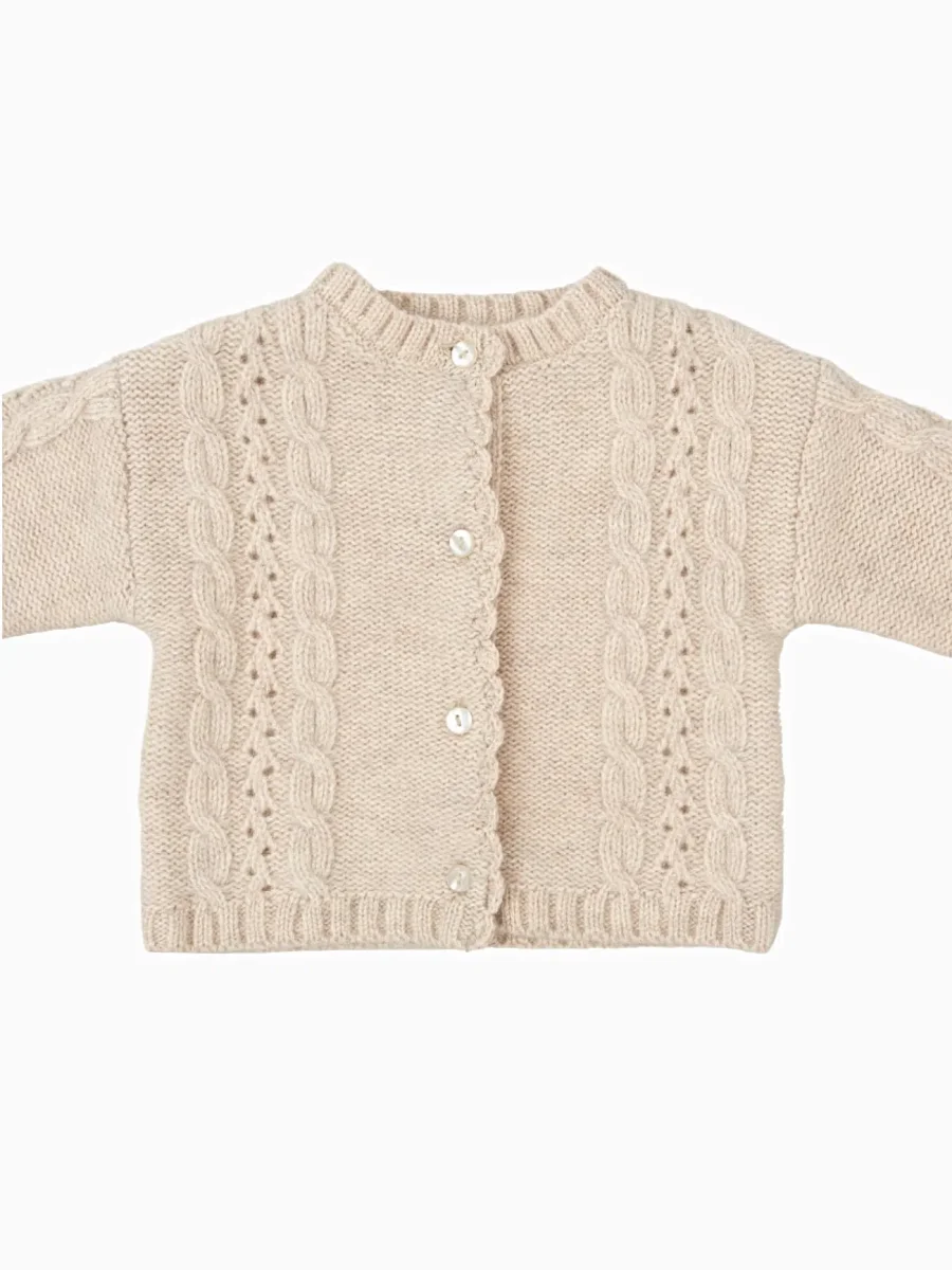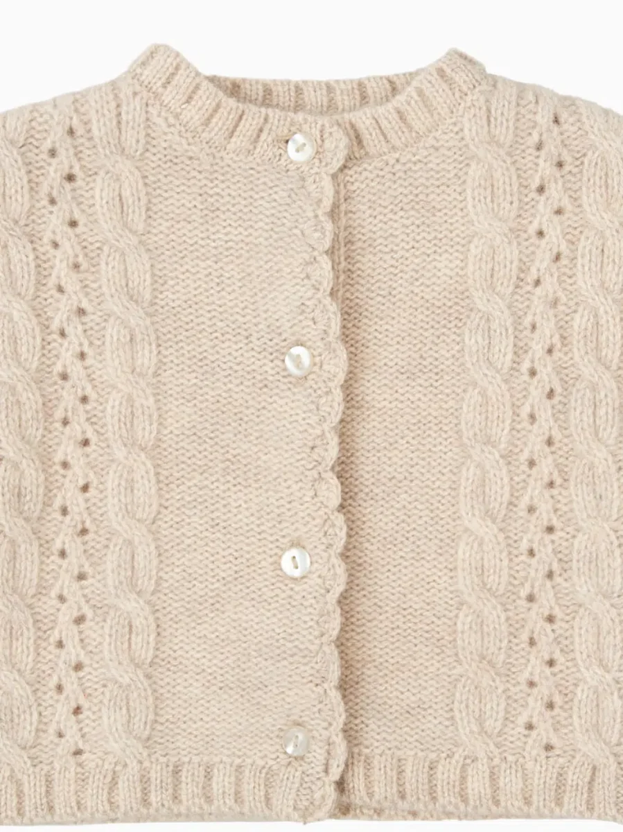 Gilet bébé fille détails ajourés – Beige