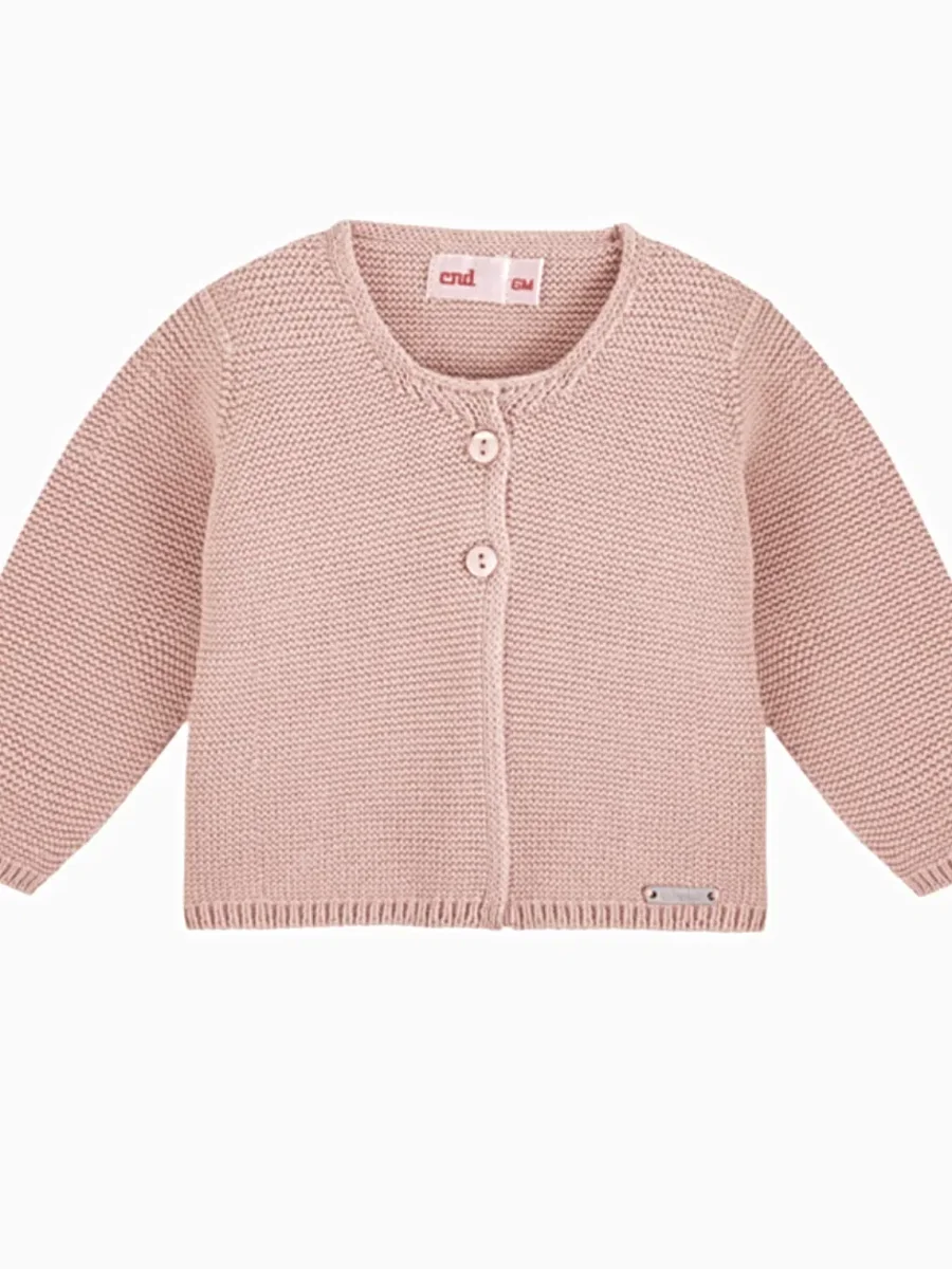 Gilet bébé fille en point mousse – Rose