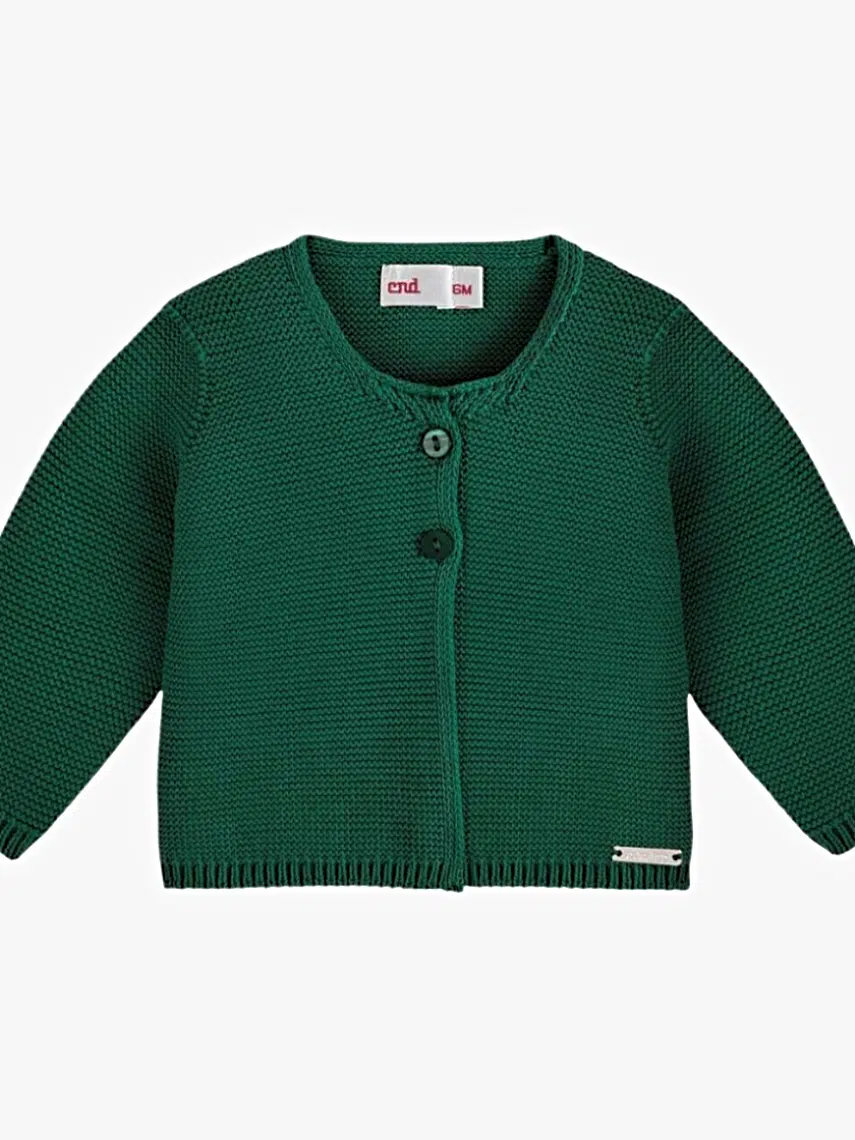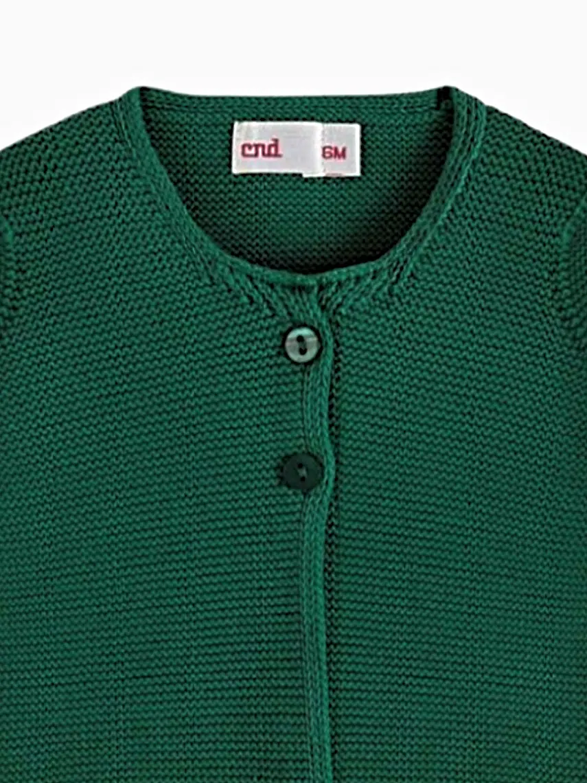 Gilet bébé fille en point mousse – Vert foncé
