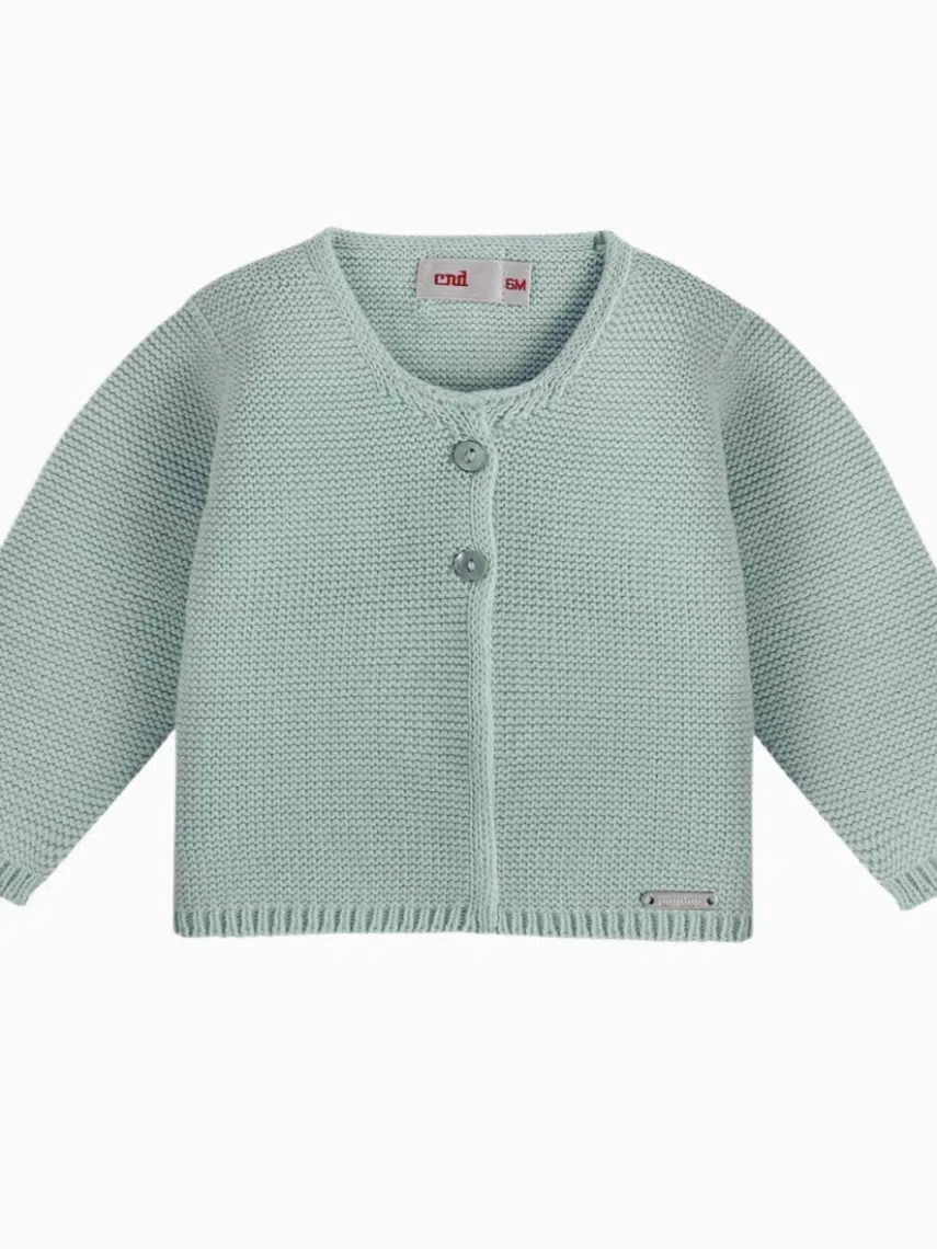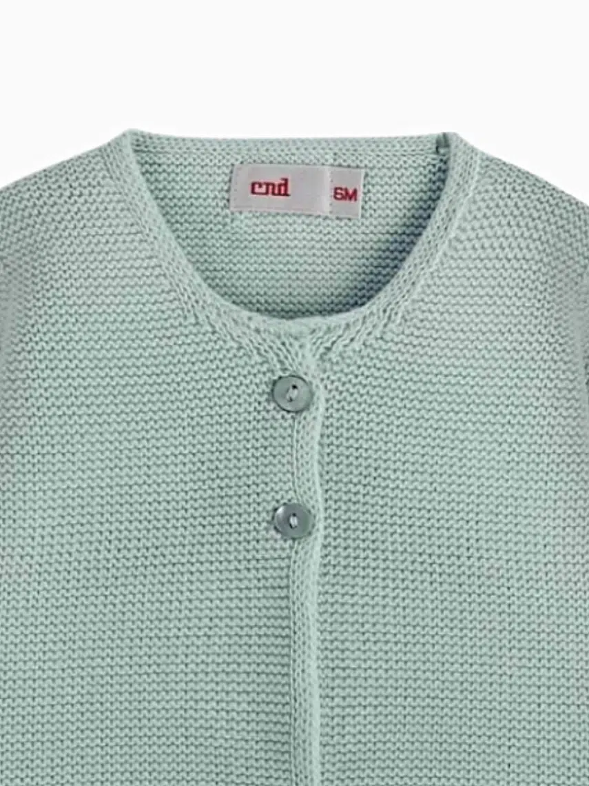 Ajoutez notre gilet bébé vert pâle en point mousse à la garde-robe de votre bébé et laissez chaque détail sublimer les moments uniques de sa petite enfance avec élégance.