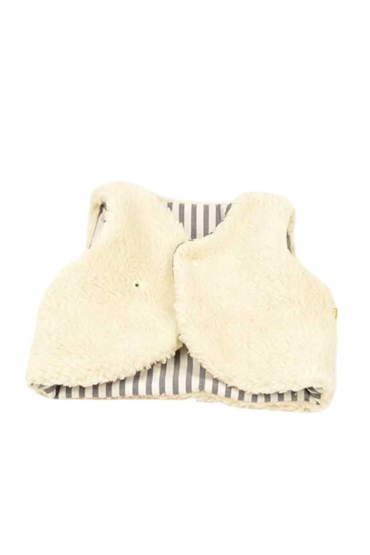 Un gilet garçon et fille, réversible et évolutif idéal pour un cadeau de naissance si vous ne connaissez pas le sexe du bébé ! Ce gilet en teddy 100% coton bio est tout doux et confortable, parfait pour les premiers mois du bébé. Une jolie doublure en popeline imprimé rayures qui permet de retourner le gilet d’un côté ou de l’autre. Un vêtement bio fabrication française. Confortable, il se retourne du coté popeline ou du coté teddy pour un total look rayures, imprimé indémodable et chic. Un gilet style berger en coton 100% coton bio certifié GOTS et fabriqué dans les ateliers de couture de LIttle Woude à Rochefort.