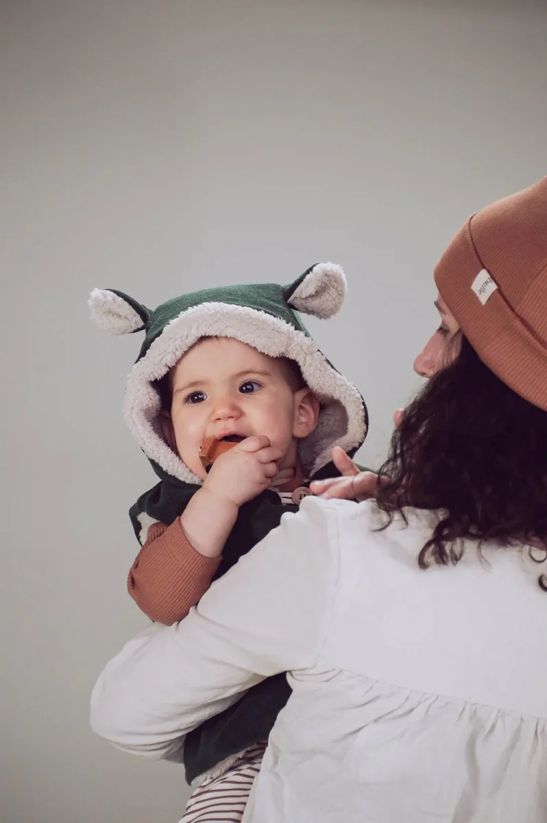 Le petit +: son look ludique avec les petites oreilles sur la capuche!