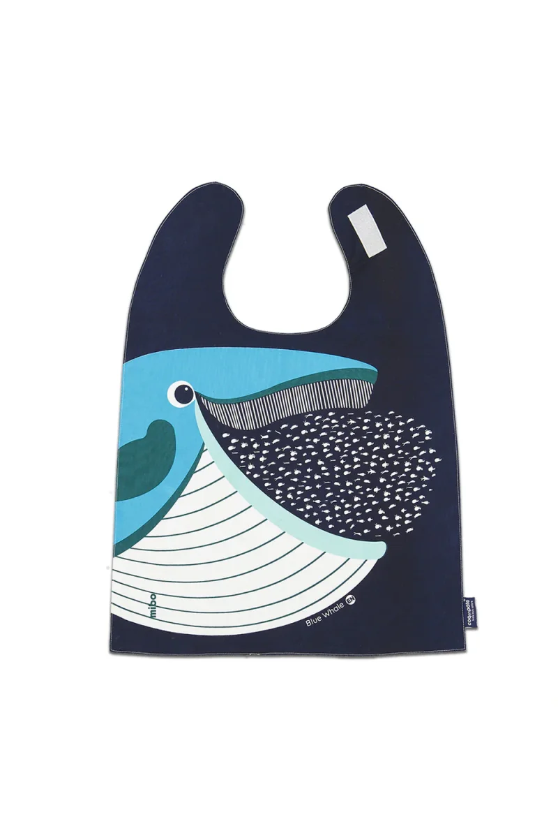 Grand bavoir avec illustration baleine, idéal pour les 2-5ans.