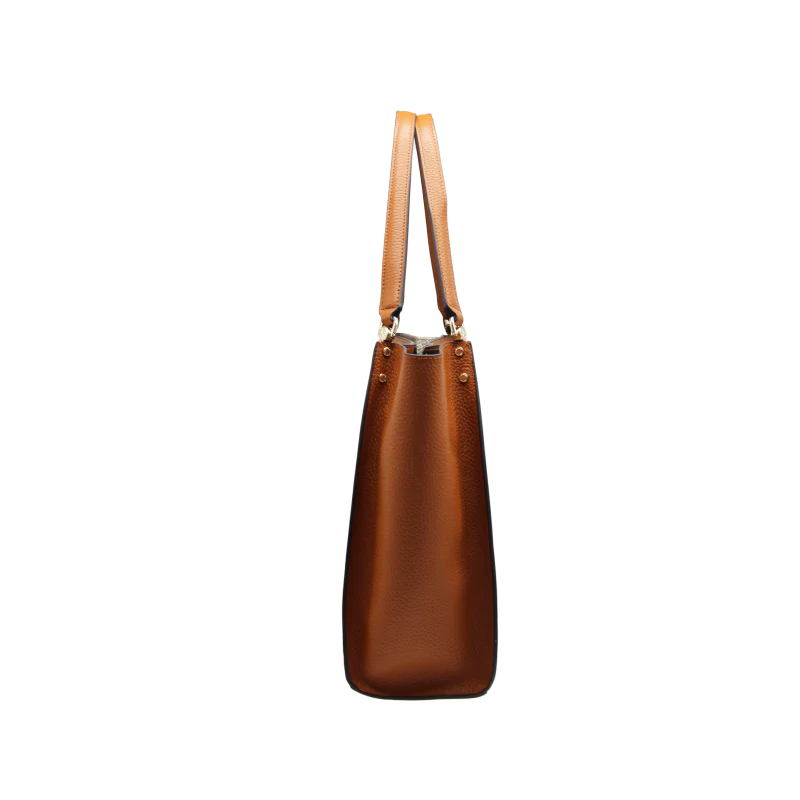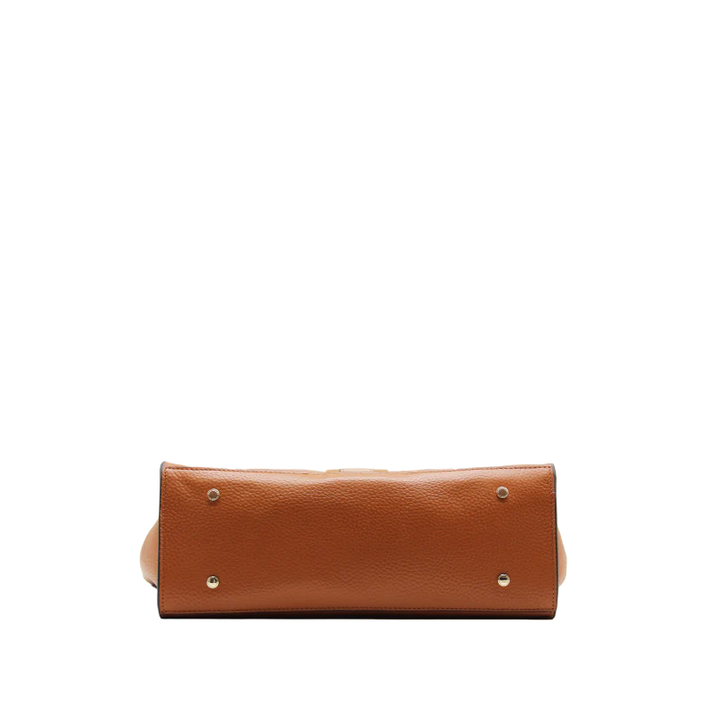 Fabriqué en 100% cuir de vachette, ce sac présente une finition grainée qui ajoute une dimension tactile et visuelle. Les détails en cuir lisse sur les bords et la bande centrale apportent une touche de contraste, tandis que la silhouette large et légèrement structurée offre une grande capacité de rangement.