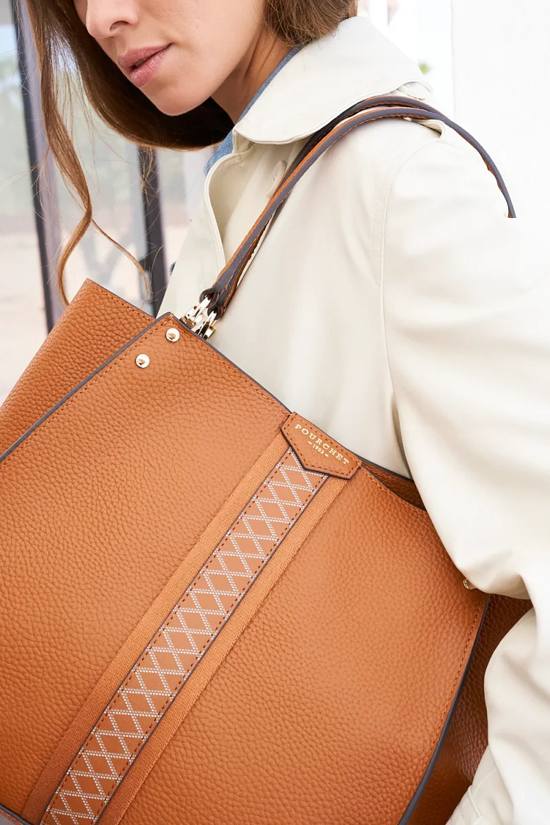 Les poignées robustes permettent un port confortable à l’épaule, rendant ce sac idéal pour une utilisation quotidienne. À l’intérieur, le Grand cabas est bien organisé avec :