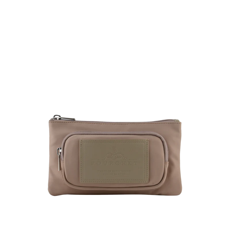 Ce modèle présente une forme rectangulaire et un design minimaliste. Il est équipé d’une fermeture éclair en métal qui assure une utilisation facile et une sécurité optimale pour vos effets personnels. À l’extérieur, une petite poche avant zippée ajoute une touche d’élégance tout en offrant un espace de rangement supplémentaire.
