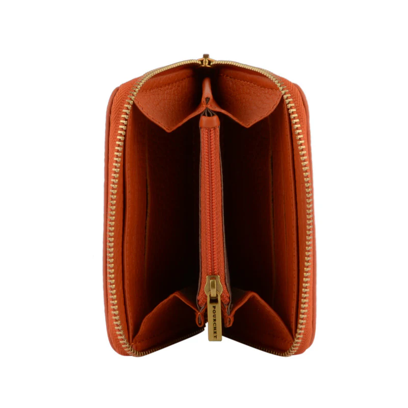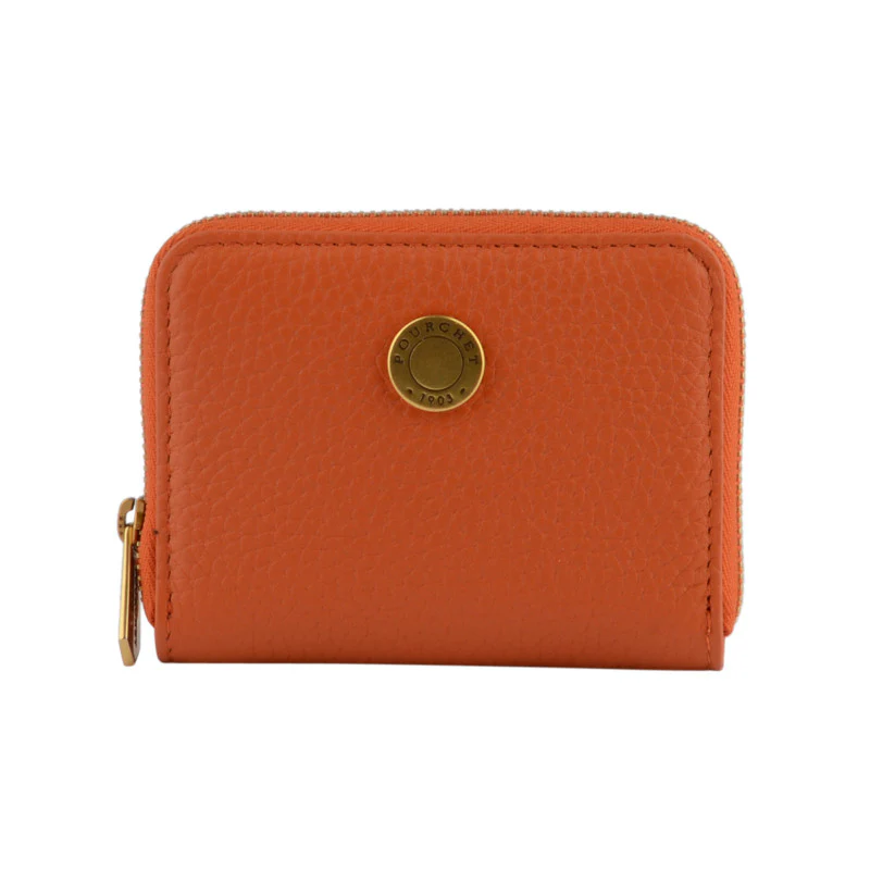 Ce petit porte-monnaie orange de la marque Pourchet est un accessoire à la fois pratique et élégant, idéal pour ranger vos essentiels avec style. Sa couleur orange vif apporte une touche dynamique et moderne, tandis que sa matière en cuir texturé assure une sensation de qualité et de durabilité.