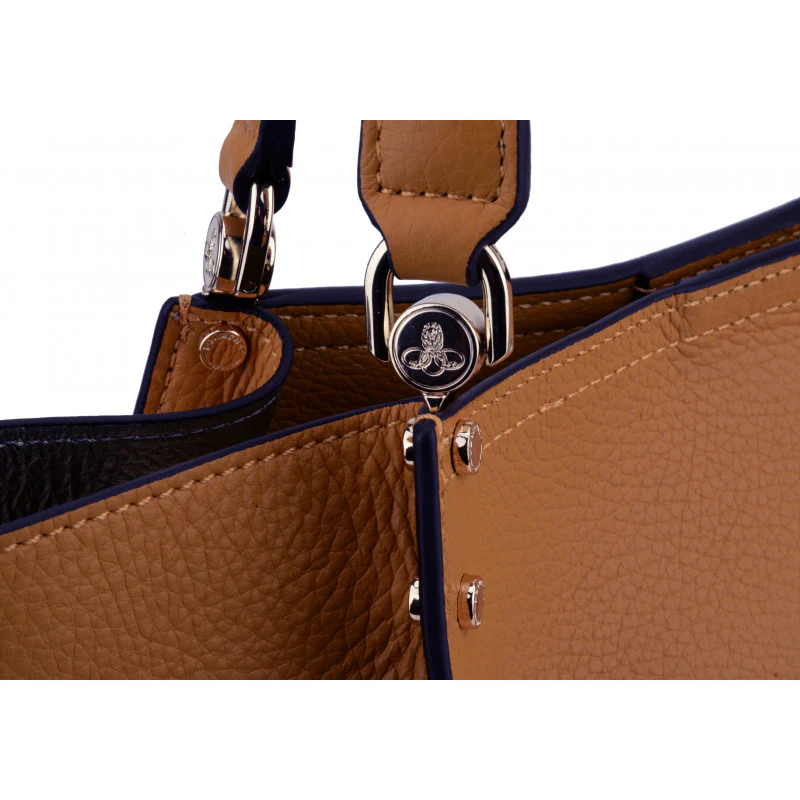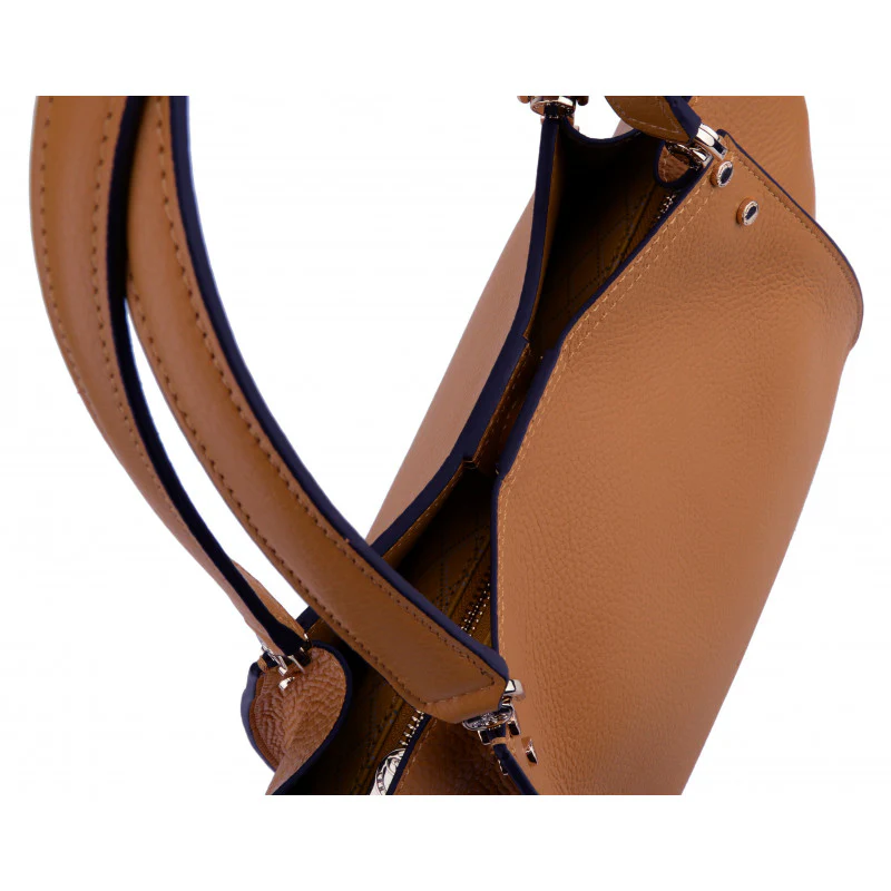 Ce sac dispose de trois compartiments, dont un compartiment central refermable par une fermeture éclair. À l’intérieur, vous trouverez une poche nipée et une poche plaquée, garantissant une organisation optimale de vos affaires. Les poignées en cuir, robustes et confortables, permettent un port à la main ou sur l’épaule, s’adaptant ainsi à vos besoins quotidiens.