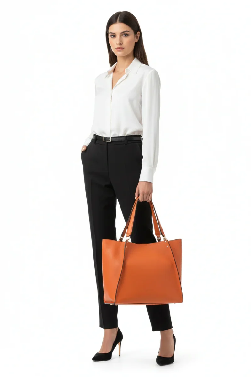 Avec des dimensions de 38 x 28 x 13 cm, ce sac possède une silhouette spacieuse et légèrement arrondie, idéale pour transporter tous vos essentiels. Sa couleur orange vif attire l’œil et apporte une touche de couleur à n’importe quelle tenue.