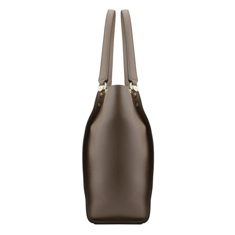 Les poignées longues et confortables permettent un port à l’épaule, renforcées par des éléments métalliques dorés qui ajoutent une touche de sophistication. Des rivets dorés sur les côtés apportent une note de style tout en renforçant la structure du sac.