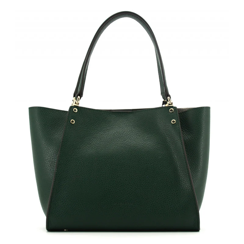 Ce sac présente une silhouette légèrement arrondie et structurée, mesurant 35 x 23 x 11 cm, ce qui le rend idéal pour transporter vos essentiels tels qu’un portefeuille, un téléphone et d’autres petits objets. Sa couleur verte apporte une touche naturelle et fraîche, facilement assortissable avec diverses tenues.