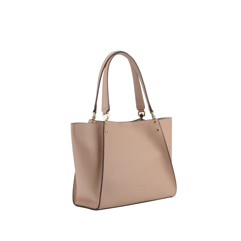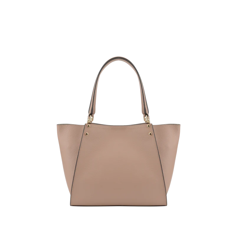 Fabriqué en cuir de veau grainé, ce sac présente une allure raffinée et un toucher agréable. Sa forme légèrement évasée vers le haut lui confère une silhouette moderne, tout en offrant un espace suffisant pour contenir vos essentiels quotidiens.