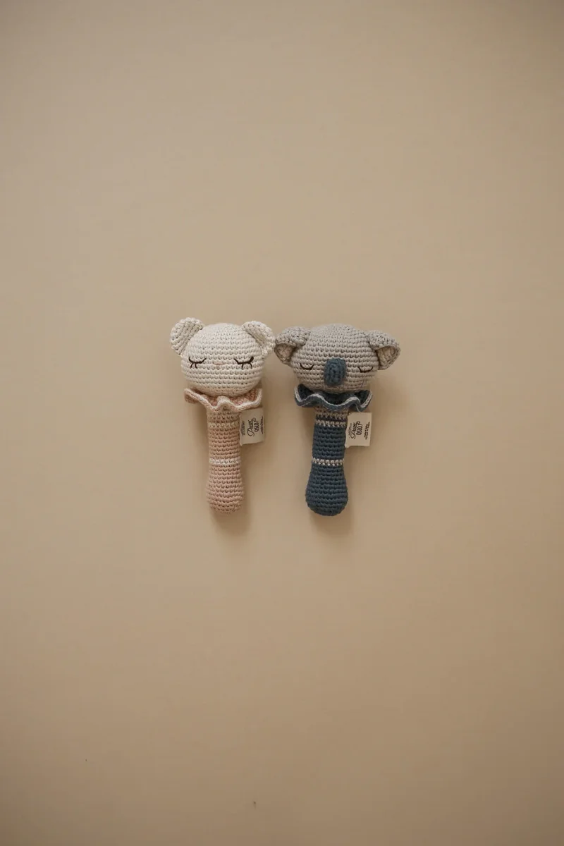 Ce hochet classique avec sa tête d’ourson très mignon est facile à manipuler pour les bébés et fait du bruit grâce à son grelot quand on le secoue.
