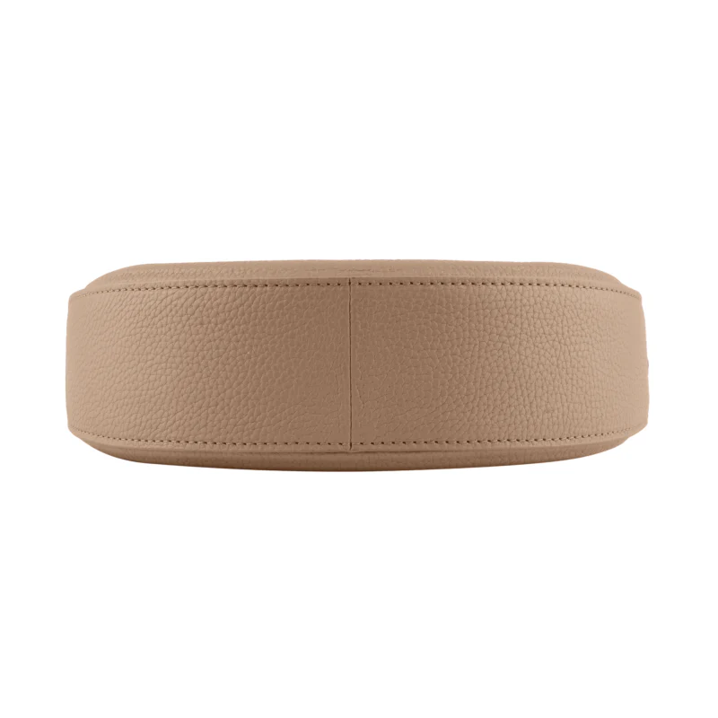 Confectionné en cuir de vachette texturé, il offre une allure chic tout en étant résistant. La texture du cuir ajoute une dimension tactile agréable, conférant au sac un aspect sophistiqué. Sa forme semi-circulaire lui donne un style unique et contemporain, idéal pour un usage quotidien.