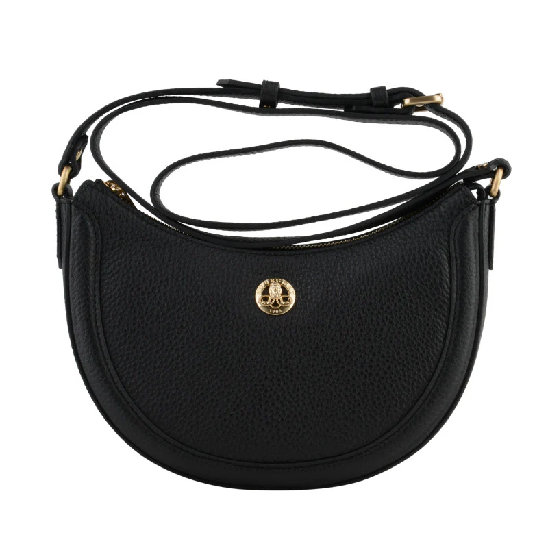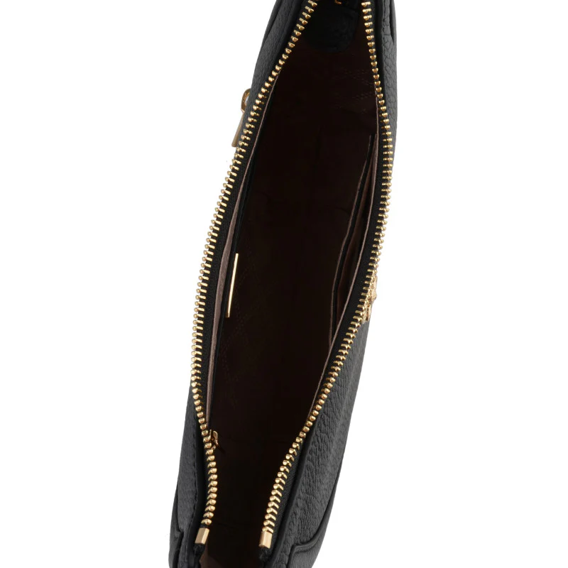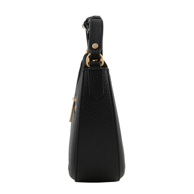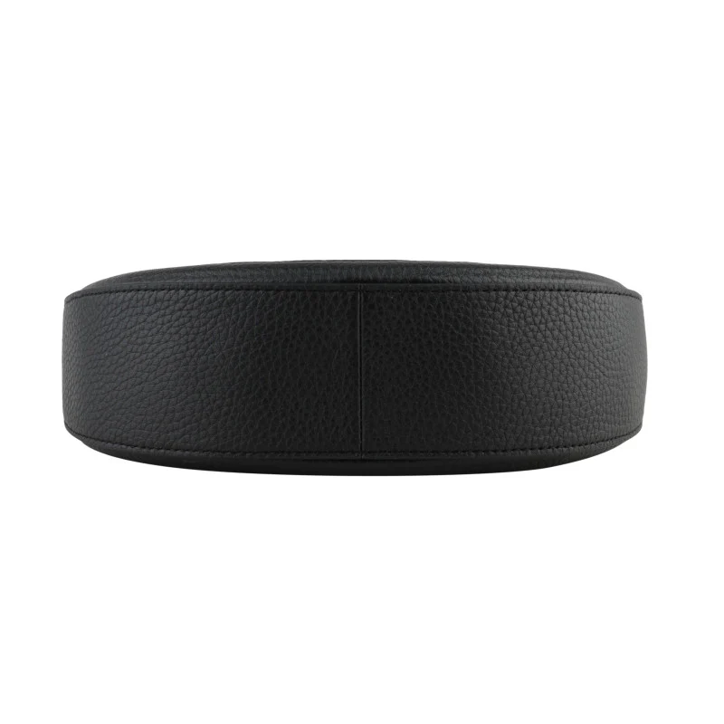 Ce sac porté épaule noir se distingue par son design élégant et moderne. Sa forme arrondie en demi-lune lui confère une allure chic, tandis que sa couleur noire en cuir texturé assure une finition durable et raffinée.