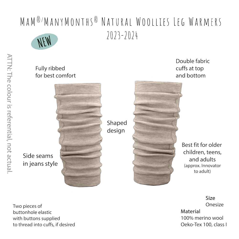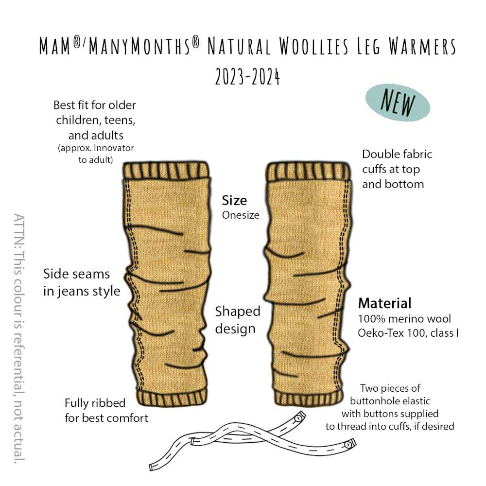 Les fameuses jambières ManyMonths en laine mérinos proposées dans une taille spéciale ADULTES et ados : les « Leg warmers » MaM sont de super guêtres qui se portent sur les jambes et chevilles comme couche supplémentaire pour tenir bien chaud. A assortir aux mitaines !