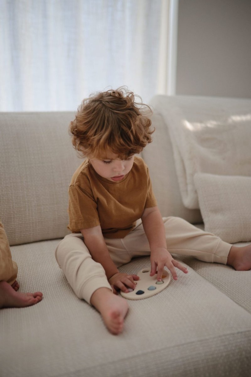 – Jouet palette Mushie 100 % en silicone alimentaire (sans BPA, BPS, PVC et phtalates),