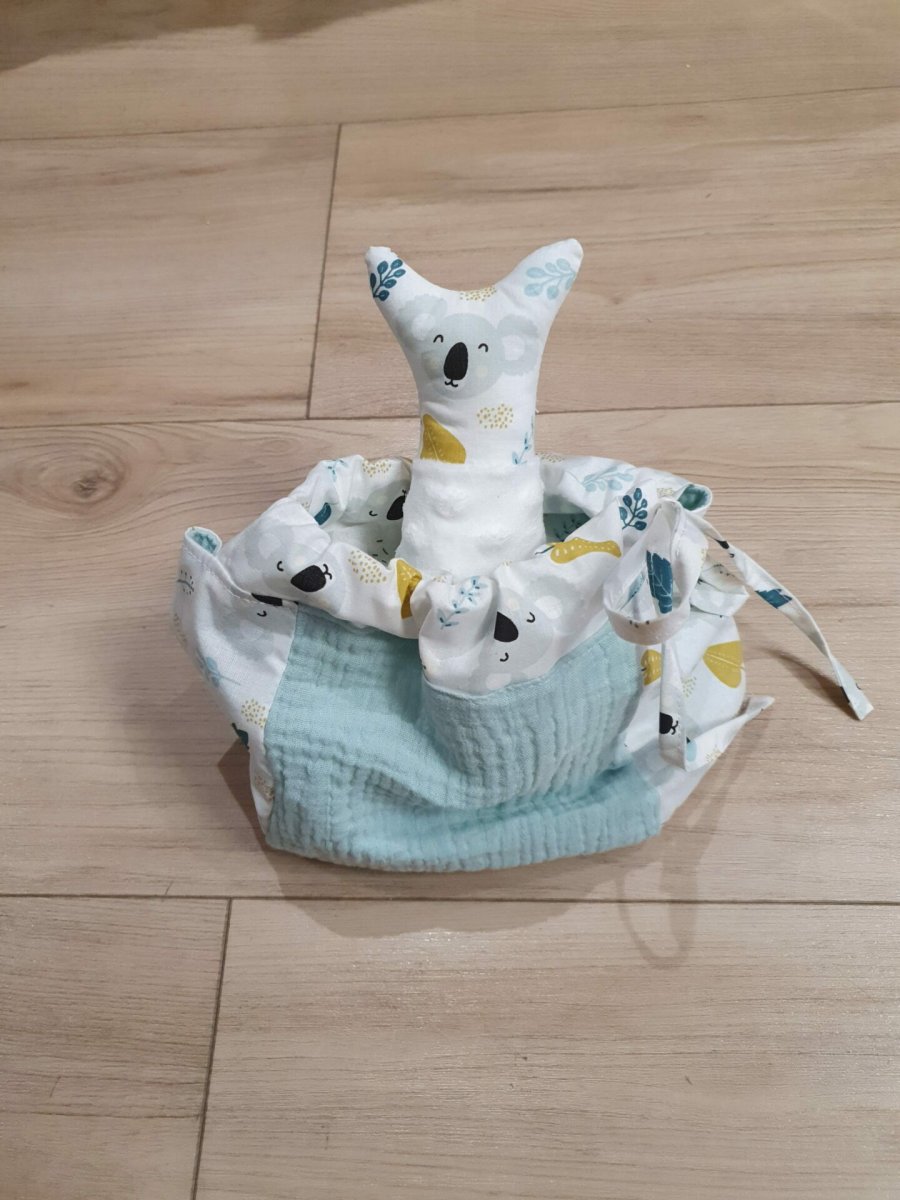 Jouet bébé et doudou en tissu BALDOU : Sac contenant jouet et doudou en tissu pour bébé, idéal pour jouer avec. Ce petit sac en tissu comprend un ballon sensoriel et un doudou tout doux en polaire et coton. Cet ensemble jouet et doudou est un cadeau de naissance idéal qui accompagnera les tous petits […]