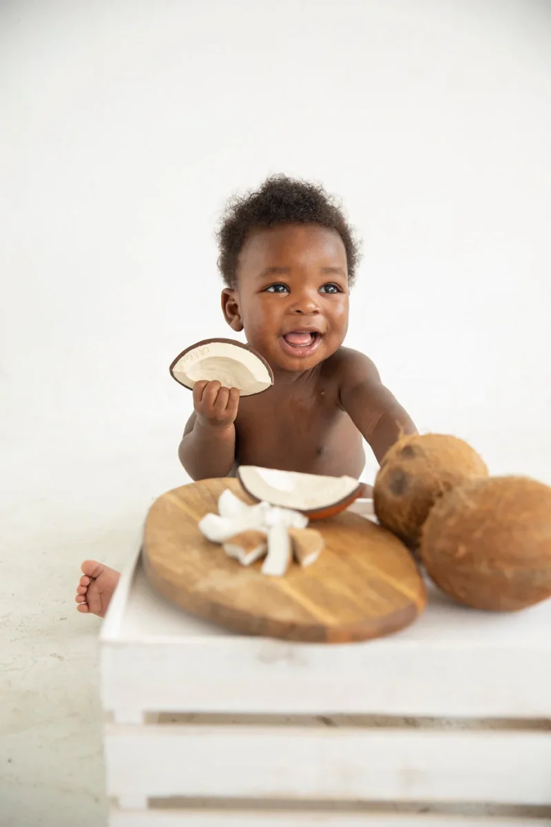 Coco the Coconut, fraîchement cueilli des palmiers exotiques, est un jouet de dentition en forme de noix de coco qui stimule les sens des bébés tout en apaisant leurs gencives pendant la poussée des dents – les initiant ainsi à un mode de vie sain dès leur plus jeune âge ! Ce sera le jouet de dentition, le jouet pour le bain et le jeu sensoriel préféré des bébés et des enfants.