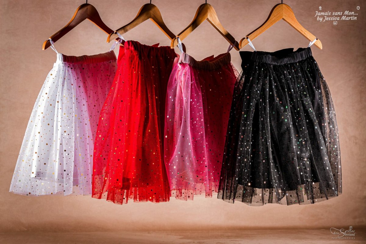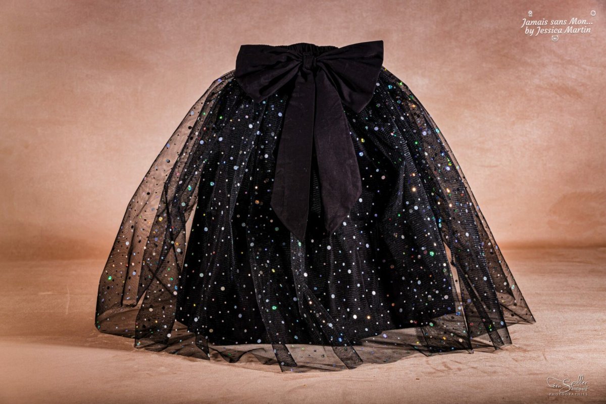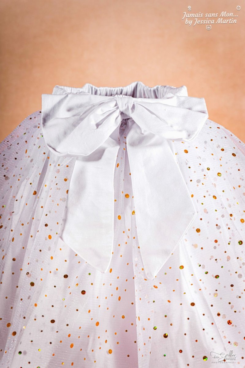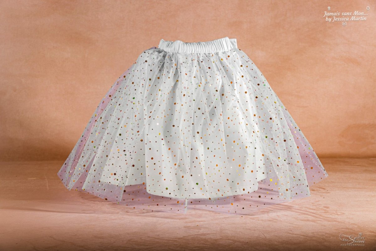 Pour les petites princesses : Tutu en tulle pailleté , ceinture élastique, doublure coton, hauteur jupe 49 cm.