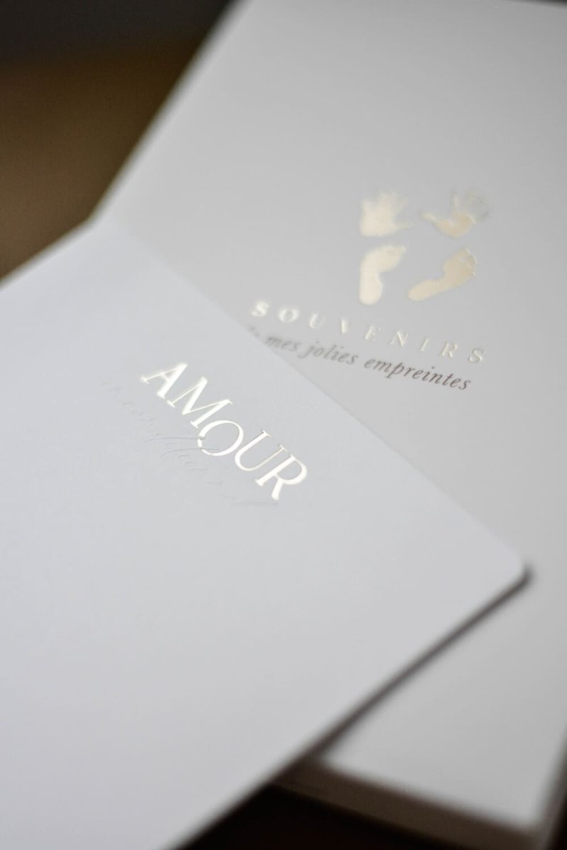 – Papier blanc 400 g avec dorure à chaud