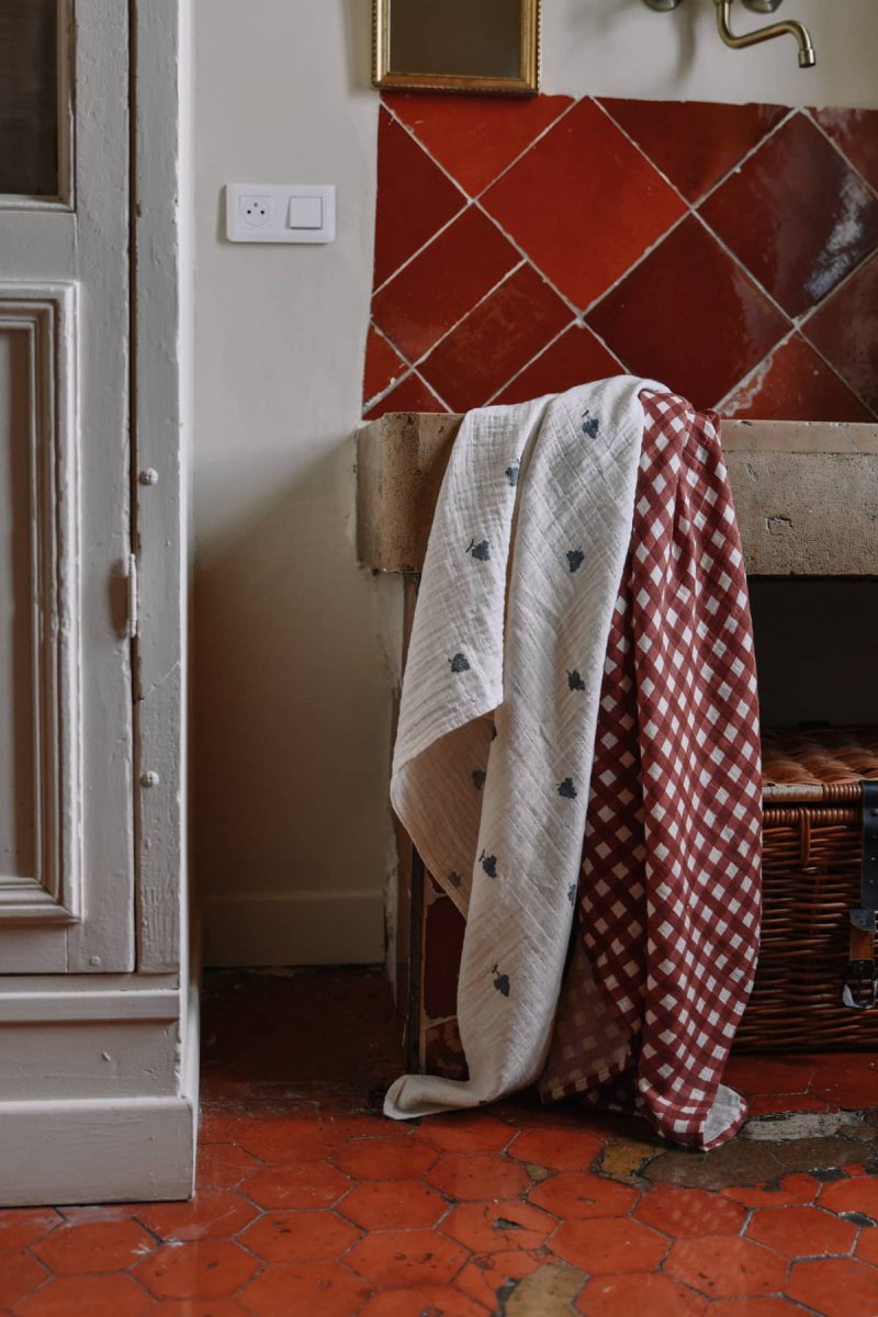 Lange taille XL aux usages multiples : drap pour le change, petit drap d’été ou serviette de plage légère, lange d’emmaillotage, protection pour la poussette, foulard enfant XL ou foulard adulte…