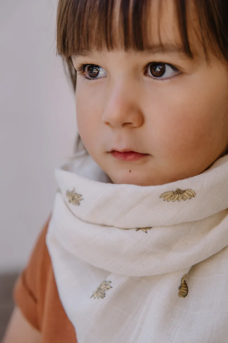 Petit lange indispensable aux usages multiples: pour la tétée, comme bavoir, en doudou ou en petit foulard, sur la tête pour protéger du soleil…