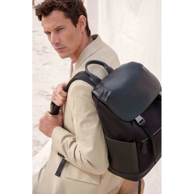 Sa silhouette classique est accentuée par un rabat supérieur, des bretelles ajustables et une poignée de transport. Ce design structuré et décontracté fait du sac à dos Leo un compagnon idéal, que ce soit pour une journée au bureau ou une sortie décontractée.