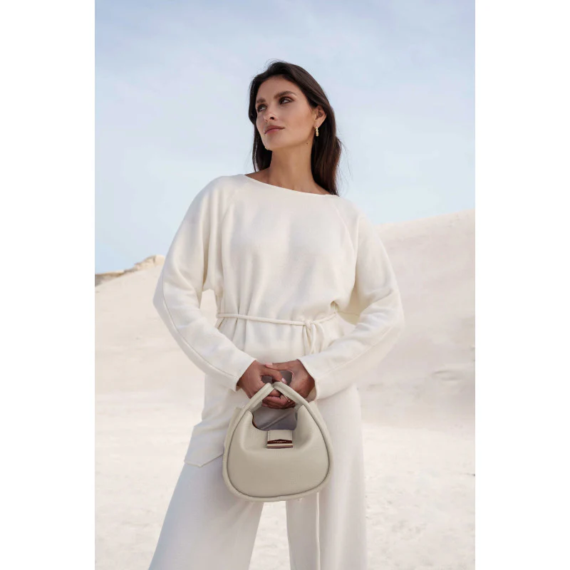 La forme légèrement structurée et arrondie du sac lui confère une allure chic tout en restant décontractée. Il est équipé de deux poignées courtes pour un port à la main, ainsi qu’une bandoulière en cuir amovible et ajustable, permettant un port épaule ou croisé selon vos préférences.