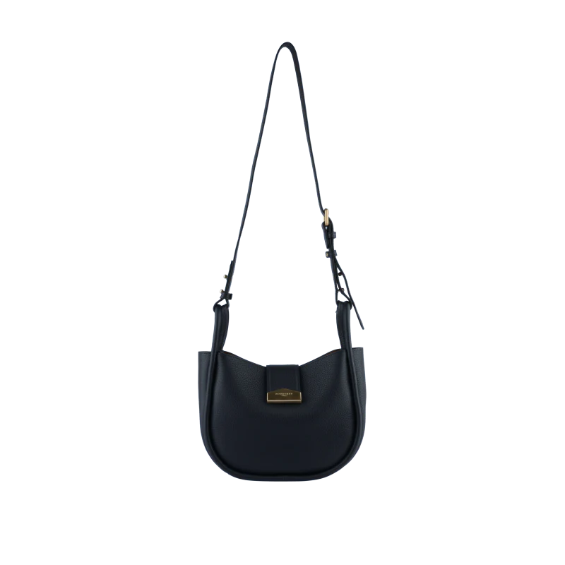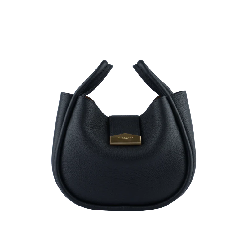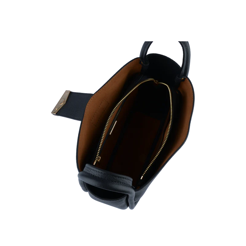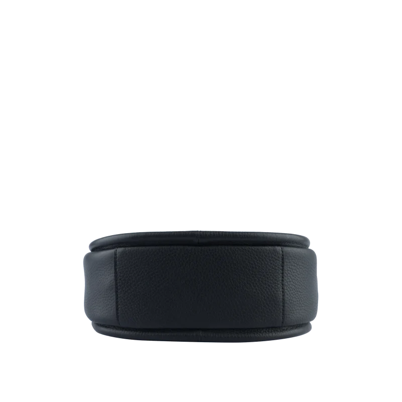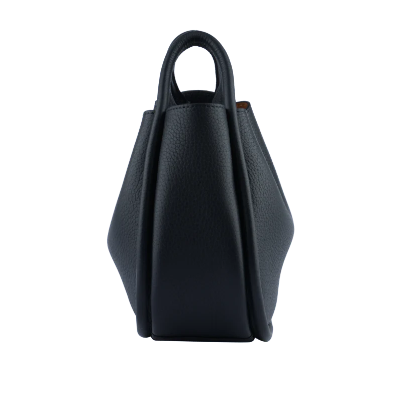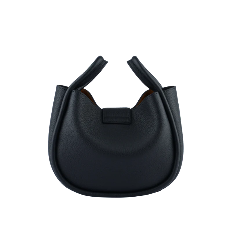 Sa silhouette arrondie et légèrement structurée est accentuée par des poignées courtes, lui conférant un aspect contemporain. Grâce à sa bandoulière réglable en cuir, le sac peut être porté à la main ou sur l’épaule, offrant ainsi une grande polyvalence.