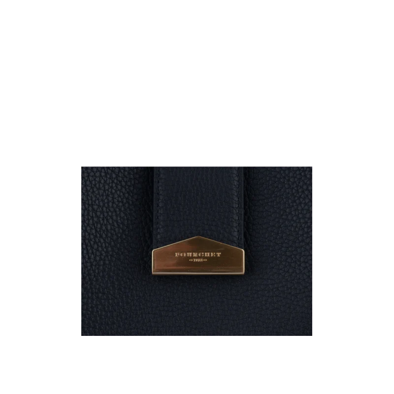 Le fermoir en métal doré à l’avant ajoute une touche de brillance et de sophistication. L’intérieur du sac, doublé d’une couleur chaude, contraste élégamment avec l’extérieur marine et comprend une poche zippée pour une meilleure organisation de vos essentiels.