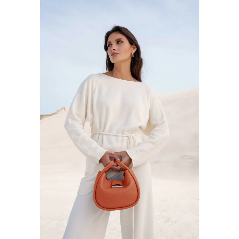 Avec ses dimensions de 24 x 18 x 10 cm, le sac présente une forme arrondie et légèrement structurée, alliant chic et décontraction. Il est conçu pour être porté de différentes manières :