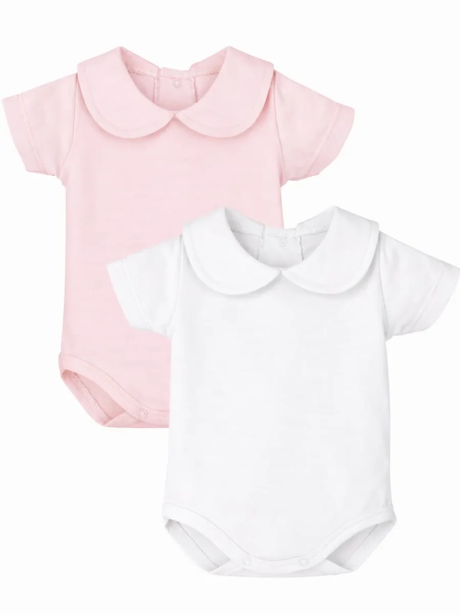 Lot de 2 bodies Col rond Manches courtes Boutons-pression à l’entrejambe 95% coton, 5% élasthanne Fabriqués en Espagne