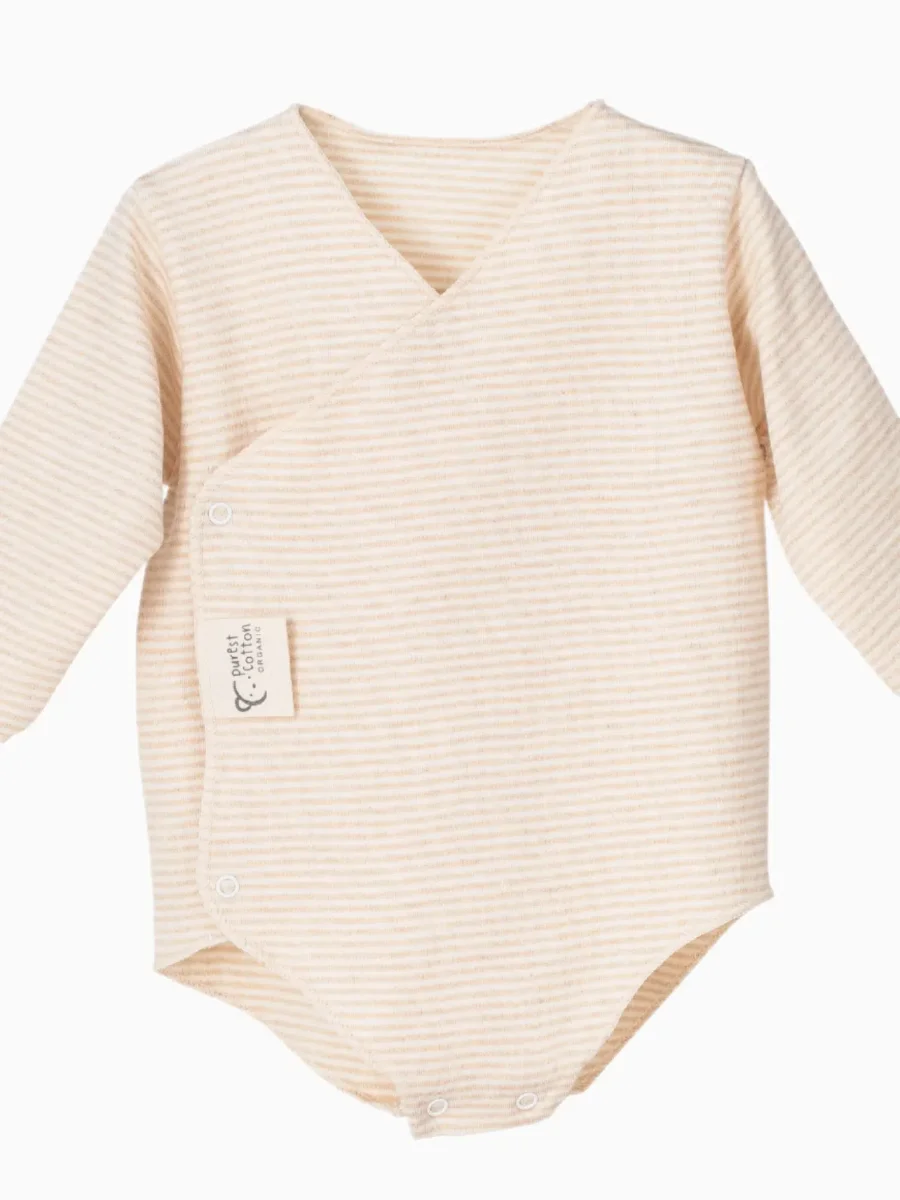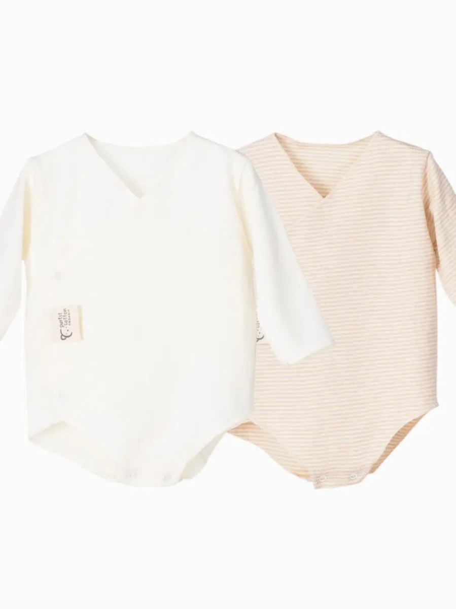 Lot de 2 bodies de naissance croisés – Coton bio extra-doux – Crème/sable rayé