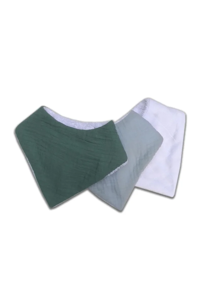 Lot de 3 bavoirs Bleu Ciel – Vert -Blanc