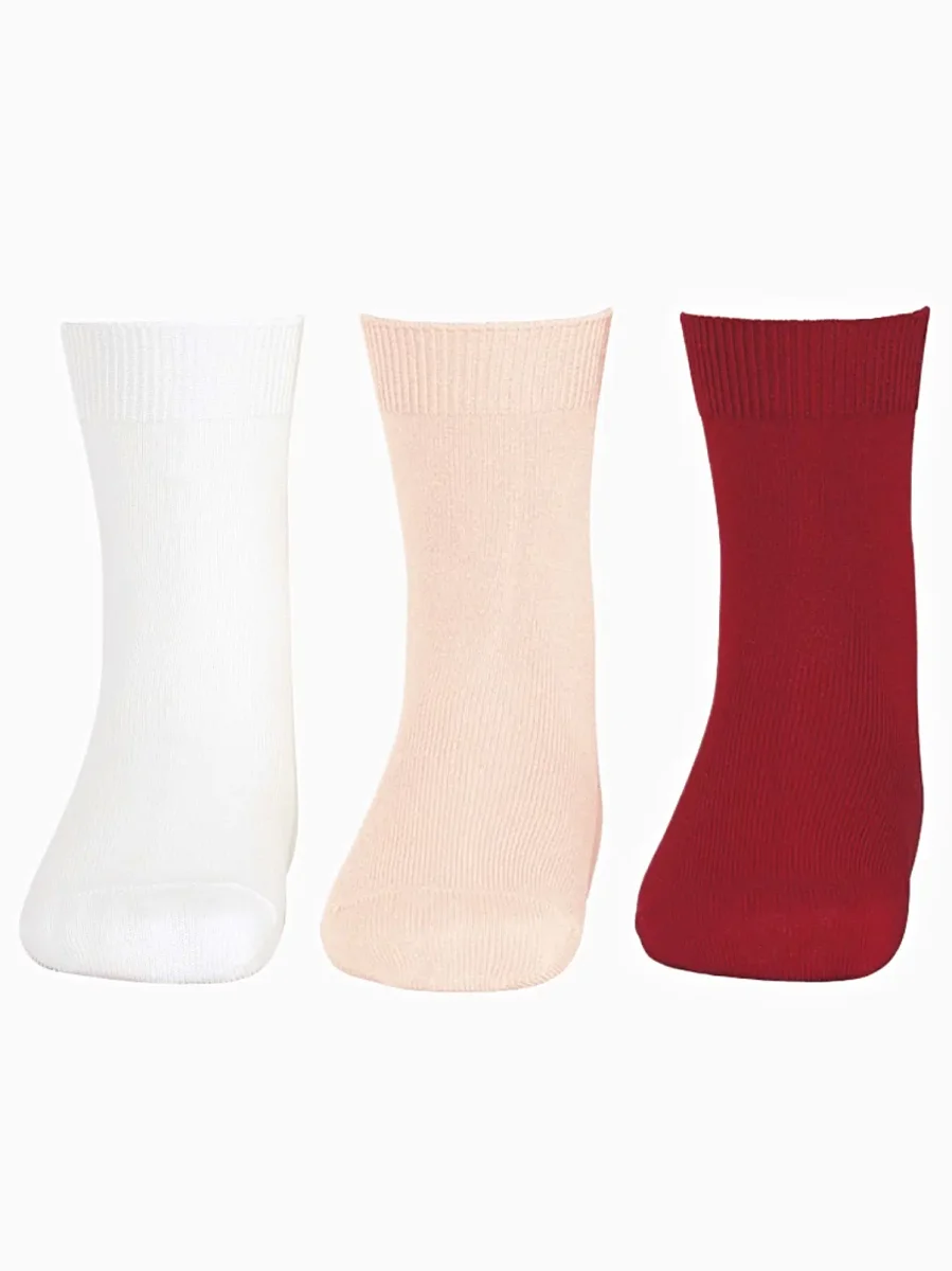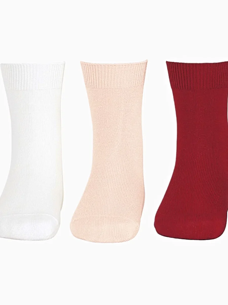 Lot de 3 paires de chaussettes bébé unies – Blanc/Nude/Rouge
