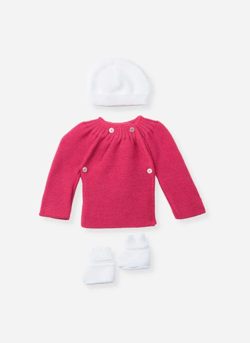 Préparez l’arrivée de bébé avec notre lot maternité essentiel, composé de trois pièces incontournables pour les premiers jours : une brassière croisée, un bonnet naissance et une paire de chaussons assortis.
