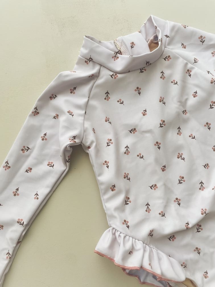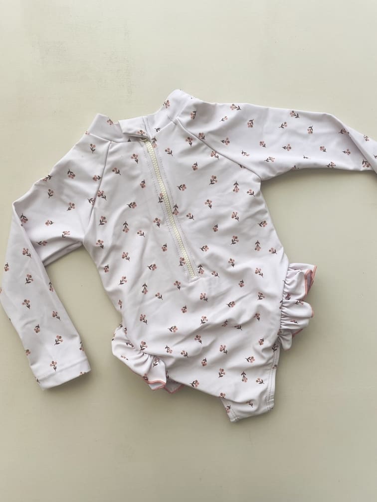 Avec ce maillot de bain fille Mrs Ertha, votre enfant sera parfaitement protégée du soleil avec style grâce à son tissu anti-uv et ses manches longues ! On adore son imprimé fleuri aux teintes douces « Flower buds » très tendance ! Doublé et élastique, la gamme de maillots de bain Mrs Ertha est aussi ultra confortable et facile à enfiler ou retirer même une fois mouillée grâce à sa fermeture discrète dans le dos !