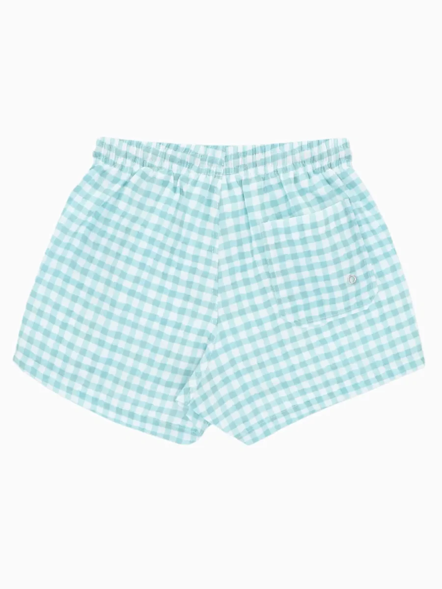 Notre maillot de bain garçon vichy turquoise trouve naturellement sa place dans la valise des vacances. Son motif graphique et sa couleur lumineuse en font une pièce à la fois originale et intemporelle.
