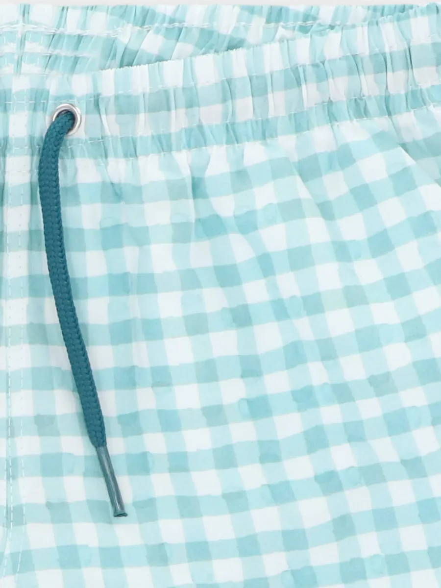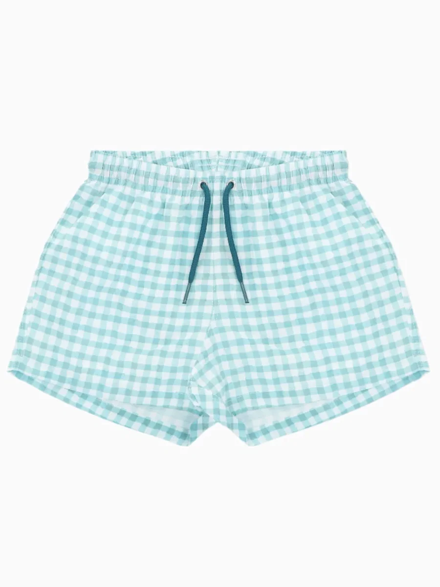 Conçu pour les vacances et les baignades répétées, ce short de bain garçon sèche rapidement et reste agréable à porter. La matière conserve l’intensité du turquoise et la netteté des carreaux lavage après lavage.